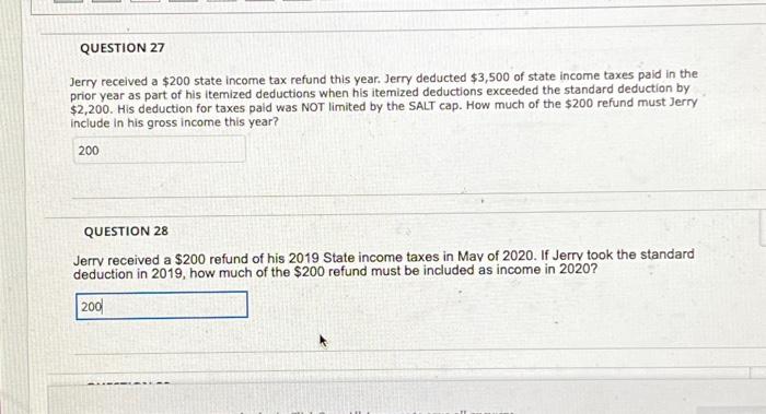 Solved Question 27 Jerry Received A 200 State Income Tax Chegg Com